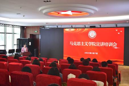 第一部分,王丹丹老师以“如何做好宣讲工作”为主题发言,综合了讲稿撰写、宣讲技巧、仪态体态等多个方面,并结合多年宣讲工作经验,给予大家细致入微的指导,王丹丹老师倾囊相授,讲解鞭辟入里,令师生受益匪浅。