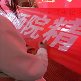 活动最后,由张梓航同学带领大家进行宣誓,铮铮誓言,铿锵有力。到场的所有同学都在条幅上进行了签字,传递了每一位同学践行社会主义核心价值观的信心,也表明大家坚定践行文明习惯,建设文明校园的决心。