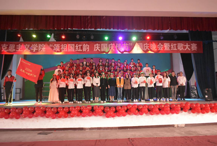 “砥砺前行七十二载 不朽红歌永流传”,歌声嘹亮,奋发激昂,红歌唱响新时代;恰逢新中国成立72周年之际,为弘扬爱国精神,培养同学们爱党爱国的伟大情怀,营造良好的校园文化氛围,yl6809永利官网于2021年10月2日在学院路校区文体馆举行了以“颂祖国红韵,庆国庆佳节”为主题的国庆晚会暨红歌大赛。yl6809永利官网党总支书记郭海莉、党总支副书记石瑾、团总支书记李思思以及班主任董伟、王欣老师应邀出席活动。