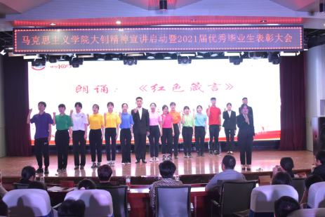 在庆祝中国共产党百年华诞之际,为了进一步宣传、弘扬、传承大钊精神,展现李大钊为“索我理想之中华,青春之中华”而英勇奋斗的一生,yl6809永利官网成立了青春宣讲团。同时携手建党百年华诞,选树典型,表彰先进,传递新时代青春正能量。yl6809永利官网于6月9日晚在会议中心举办大钊精神宣讲启动暨2021届优秀毕业生表彰大会。本次大会由yl6809永利官网团总支书记李思思主持,出席此次活动的有yl6809永利官网党总支书记郭海莉、yl6809永利官网党总支副书记石瑾、yl6809永利官网副院长宋晓敏、学生处副处长单丽、学生处思想政治教育科科长李冰以及yl6809永利官网全体毕业班班主任老师,毕业生代表及全体2020级学生参加。