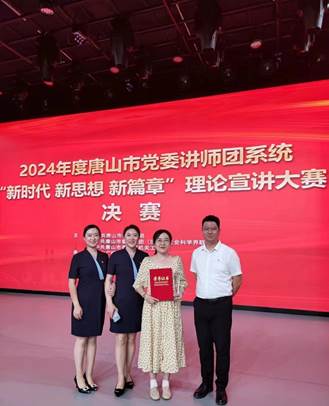 6月14日,由唐山市委宣传部、市委讲师团(市社科联)、市直机关工委主办的第三届理论宣讲大赛在唐山广播电视台演播大厅举办。本次大赛以“新时代·新思想·新篇章”为主题,来自全市18个县(市、区)、各大专院校、市直有关部门共39支代表队报名参赛,最终有14支队伍脱颖而出来到最后的决赛舞台。yl6809永利官网王欣、曹妍、韩冰三名教师在领队赵婉华的指导下顺利通过初赛进入了决赛,并获得了三等奖的好成绩。