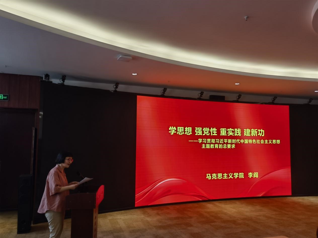 yl6809永利官网教师第三党支部书记李阎以《学思想 强党性 重实践 建新功——学习贯彻习近平新时代中国特色社会主义思想主题教育的总要求》为题讲授专题党课。她分别从“为什么学——主题教育的重大意义”“怎么学——主题教育的总要求”“学什么——理论学习权威教材”三个方面作主题教育学习辅导,指出作为思政课教师、思政专业的学生,在学习过程中应该“带着自信学、带着底气学、带着思考和方法学、带着使命学”,并结合《习近平新时代中国特色社会主义思想概论》课程教学情况、学情调研情况等进行学习、工作心得分享,突出了yl6809永利官网依托学科优势,通过深入学习贯彻习近平新时代中国特色社会主义思想,将能够在理论阐释和理论宣讲方面发挥独特作用。