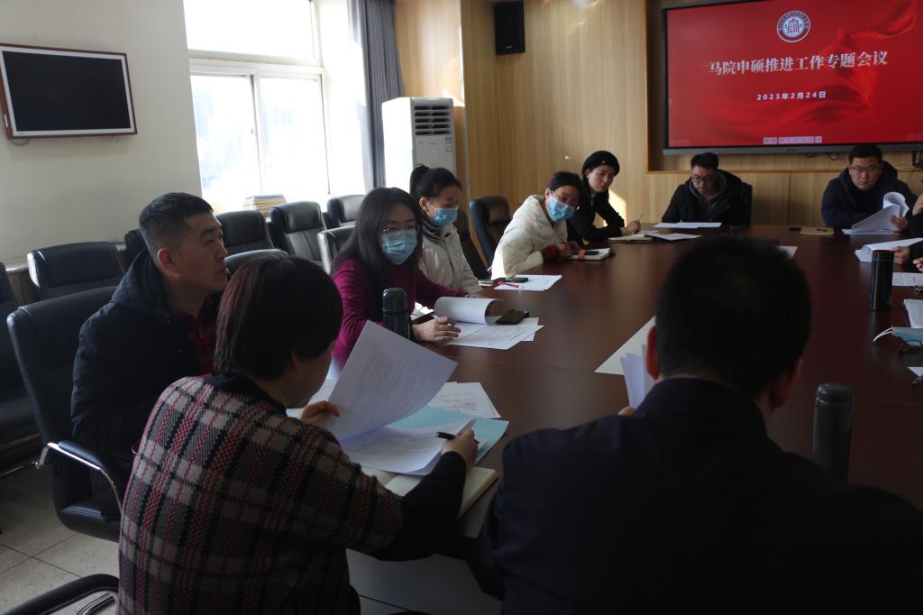 2月24日上午,yl6809永利官网在南院主楼801会议室召开马克思主义理论申硕工作推进会。马克思主义理论学科申硕工作小组全体成员参加会议,马院执行院长宋晓敏主持会议。