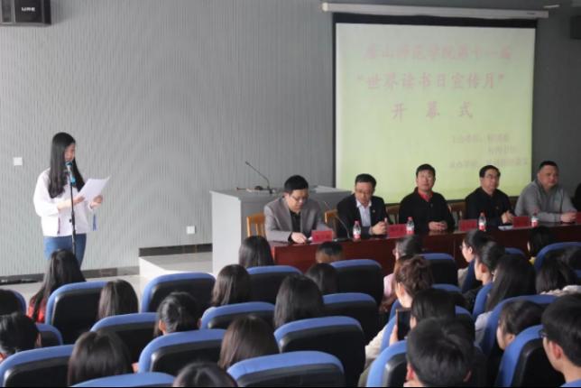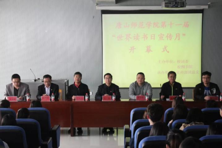 为激发全校师生的读书热情,营造健康积极向上的校园文化氛围,由我校团委和图书馆主办,社会科学部承办的唐山师范学院第十一届世界读书日宣传月暨第五届以“手捧万卷书,兼修品与行”为主题的读书节开幕式于2018年4月18日在图书馆学术报告厅隆重举行。